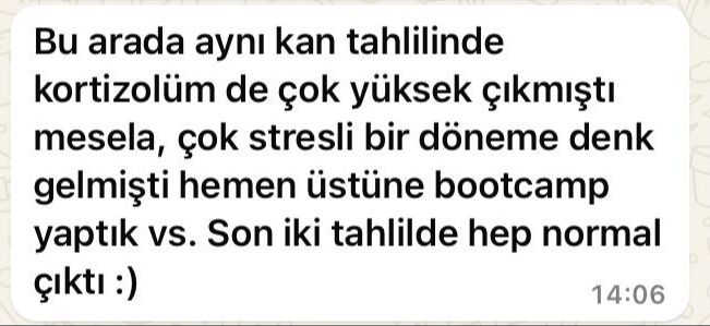 Yıllardır düşmeyen, stres hormonu olarak da bilinen kortizolü BootCamp sayesinde kısa sürede normal değerlere dönmüş