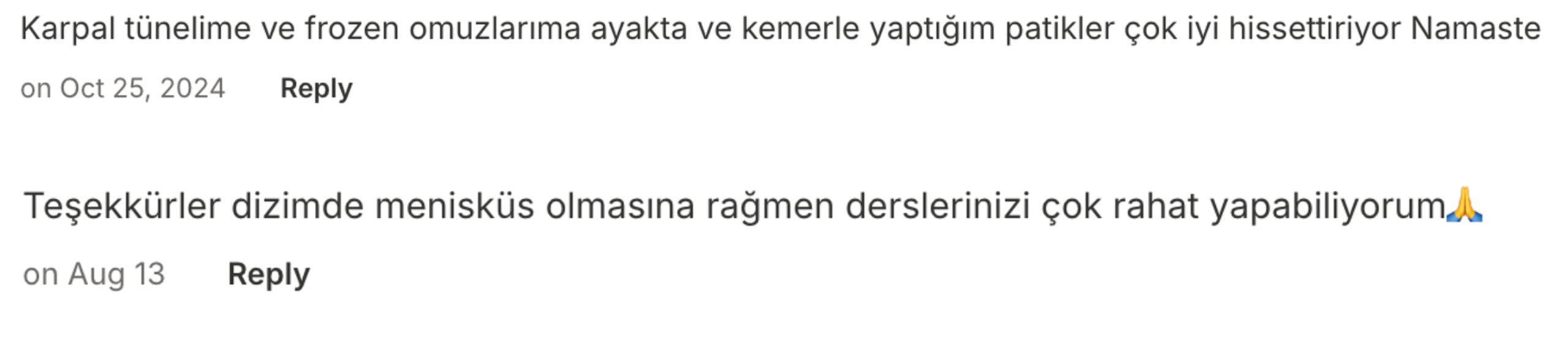 2014 yılından beri 100lerce bireysel danışanım ve grup programlarıma katılan 1000lerce öğrencim oldu. Kanser, migren, fibromiyalji, MS, endometriozis, IBS, fıtık, menüsküs ve daha birçok hastalığı olan öğrencim ile yaptığım düzenli çalışmalar, geliştirdiğim Bedene Şefkat yaklaşımının hastalıklar üzerinde olumlu ve sürdürülebilir etkisini görmemde destek oldu.